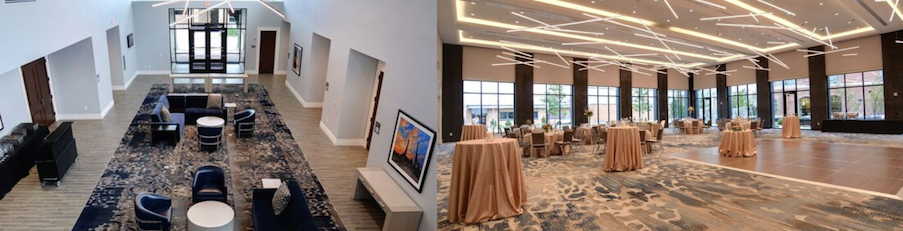- 4,500 sq ft Ballroom seats up to 250 people classroom style or 300 for receptions