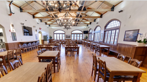- Opens to outdoor courtyard with fire pit and seating for 100 people